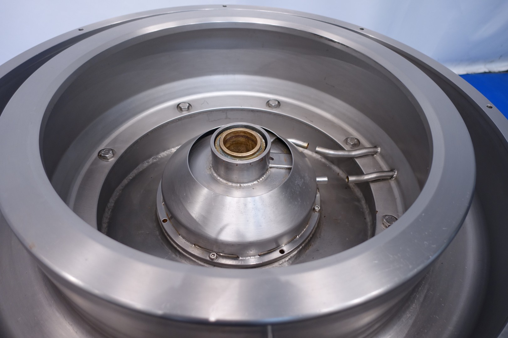 Milk or whey Clarifier, self cleaning. Including bowl, bowl speed: 5.920 rpm, motor, motor cover, OWM and manouvering water valves, manometer on outlet. Heavy liquid 1,0 kg/dm3 - solids 1,1 kg/dm3. Motor 36 kW - 59 A - 1.760 rpm - 60 Hz. Capacity with milk 30m3 and with Whey 25m3/h Without shafts, tools, can be made on request. Machine not complete. Total dimensions: 175x95x159 (lxwxh) - total weight: 1.787 kg.