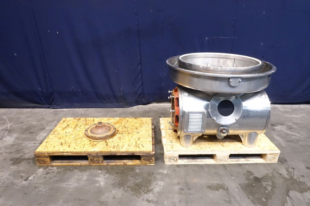 Stainless steel solids collector (pan) of a Westfalia MSD140-96-076 with gasket. Pos.: 24 - Part-Number: 1355-1018-000 - Qty.: 1 - Part description: Solids collector Pos.: 40 - Part-Number: 0007-3063-840 - Qty.: 1 - Part description: Gasket - Dimensions: 804x826x18