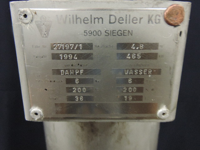 Water= 6barr/208C/19 L - Steam= 6barr/208C/36L - 46,5kW